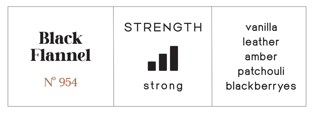 BLACK FLANNEL blends the richness of leather and sandalwood with the warmth of amber and vanilla. Earthy patchouli and a burst of wild blackberries add a fresh twist creating this full-bodied and captivating scent.