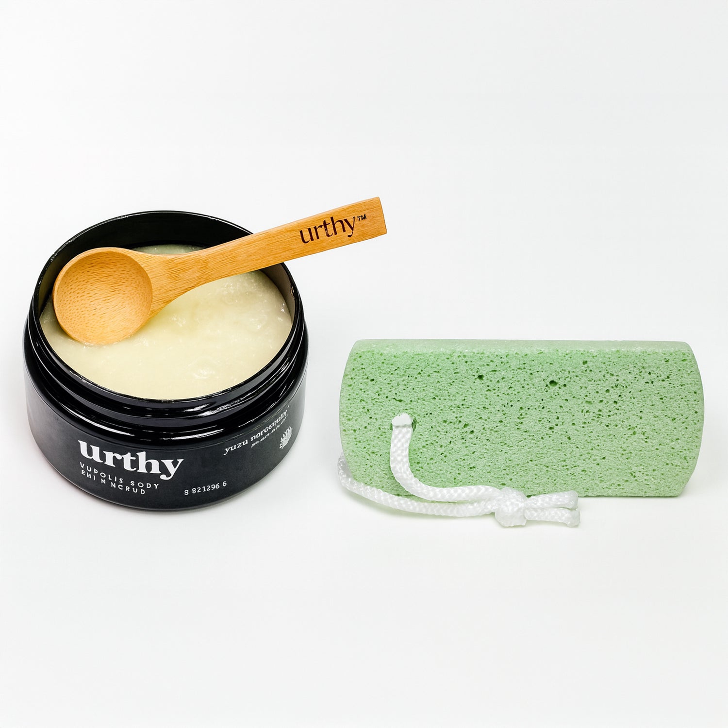 - Urthy Exfolis Body Balm Scrub – Gently buffs and hydrates for a smooth, radiant finish.