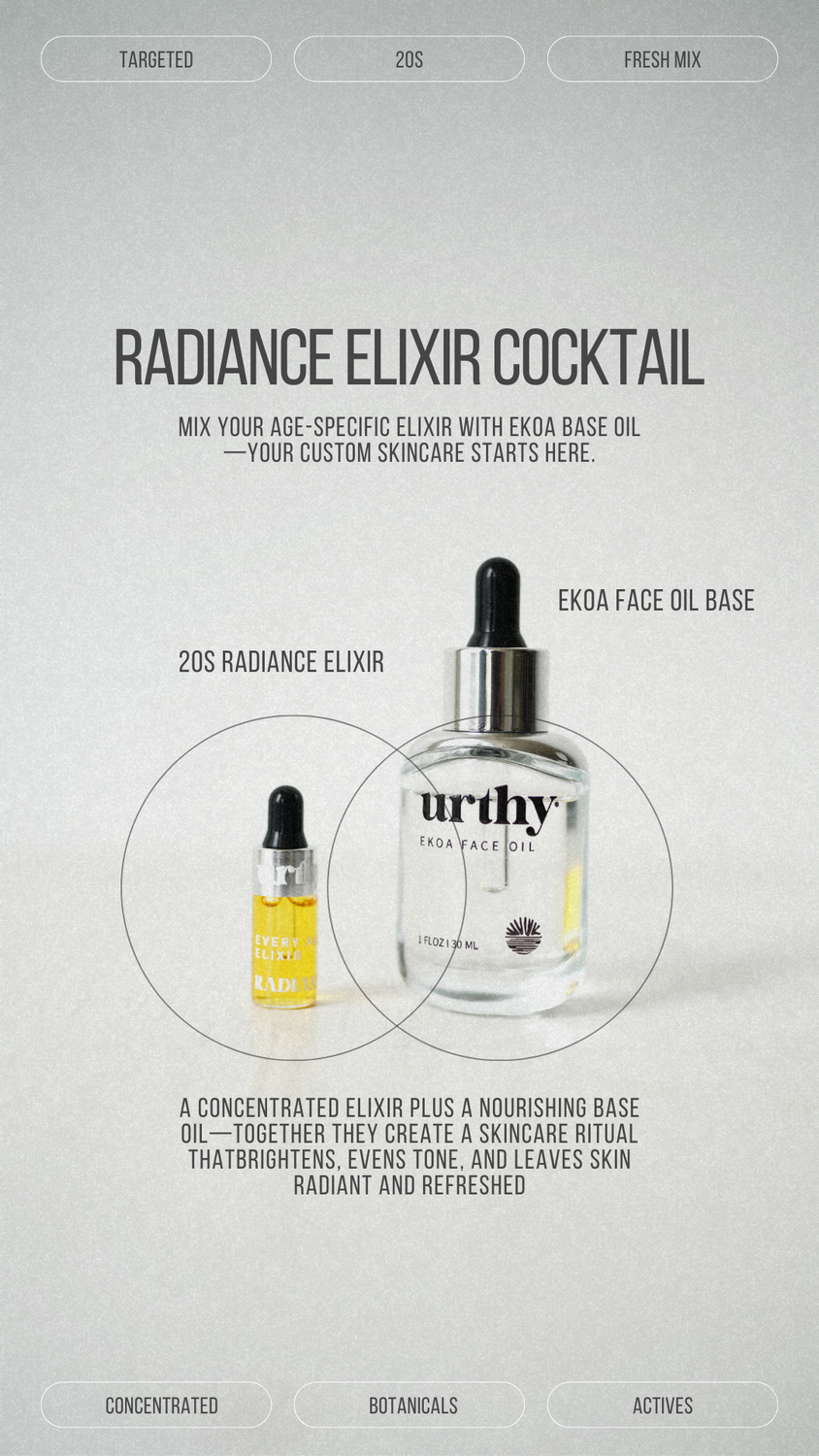 - Pour Mini Elixir into Ekoa Face Oil First. Do not use the Elixir directly on your skin.