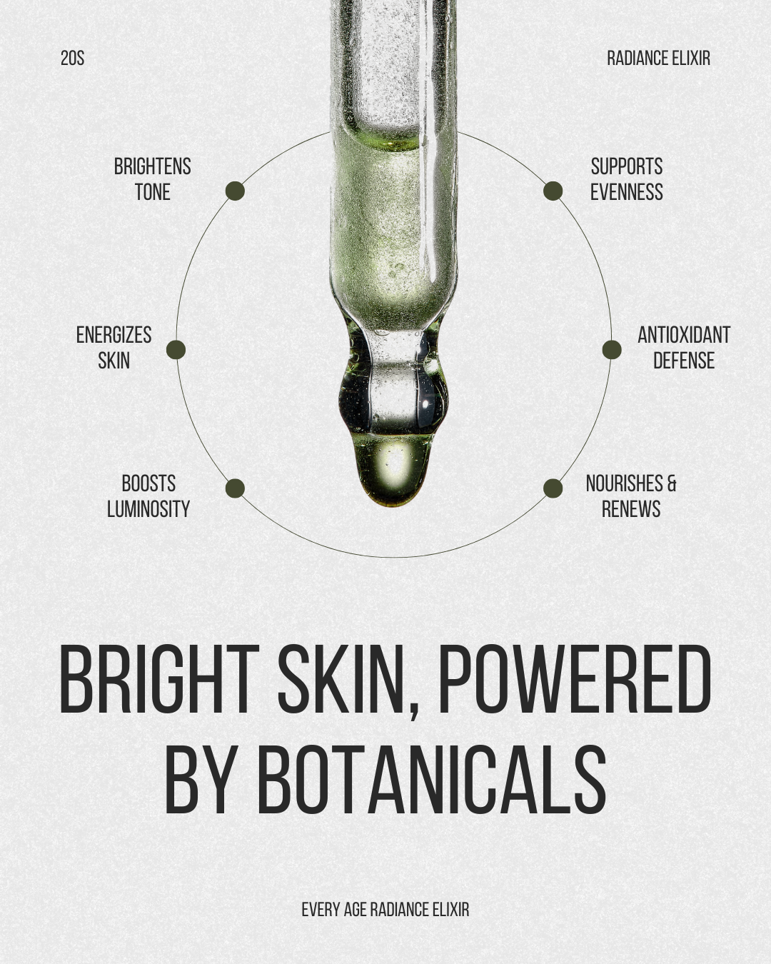 Every Age Radiance Elixir - a superfruit blend designed to brighten and nourish skin.