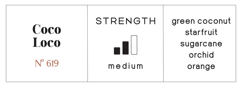Escape to paradise with the tropical scent of COCO LOCO! Enjoy the sweet notes of sugar cane, coconut, and musk, tiger orchid notes, along with refreshing cara orange, pear nectar, and starfruit pulp.