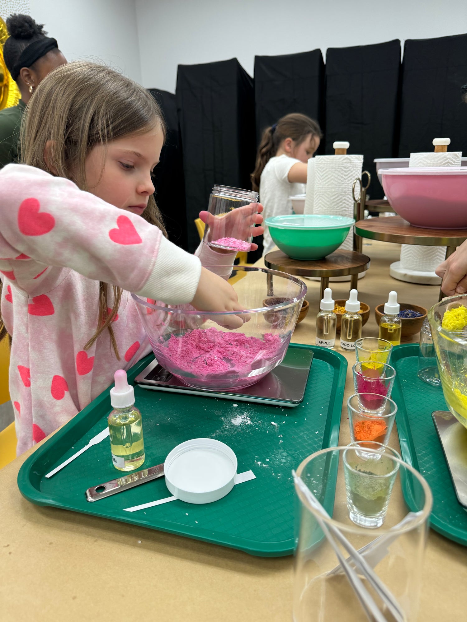 Welcome to the Bath Fizzies Lab — a hands-on experience designed especially for kids (and the young at heart). This playful class lets little creators have fun while learning how to make their own colorful, bubbly bath fizzies.