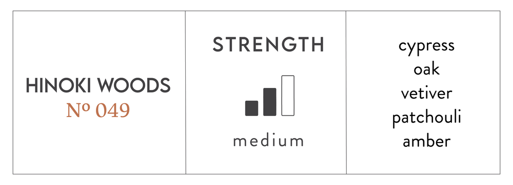 HINOKI WOODS is a sublime fragrance that balances the green scent of hinoki with vetiver, cedarwood, citrus, and white musk creating a harmonious, grounding vibe that has the power to make you feel like chanting ommmmmm.